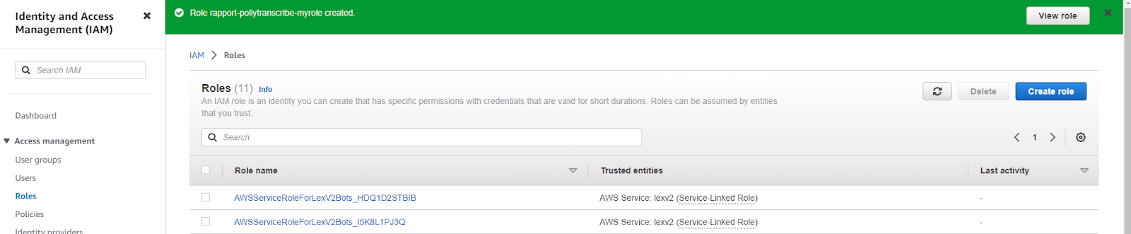 It may be helpful to consider creating a role for the ASR AWS Transcribe at this stage.