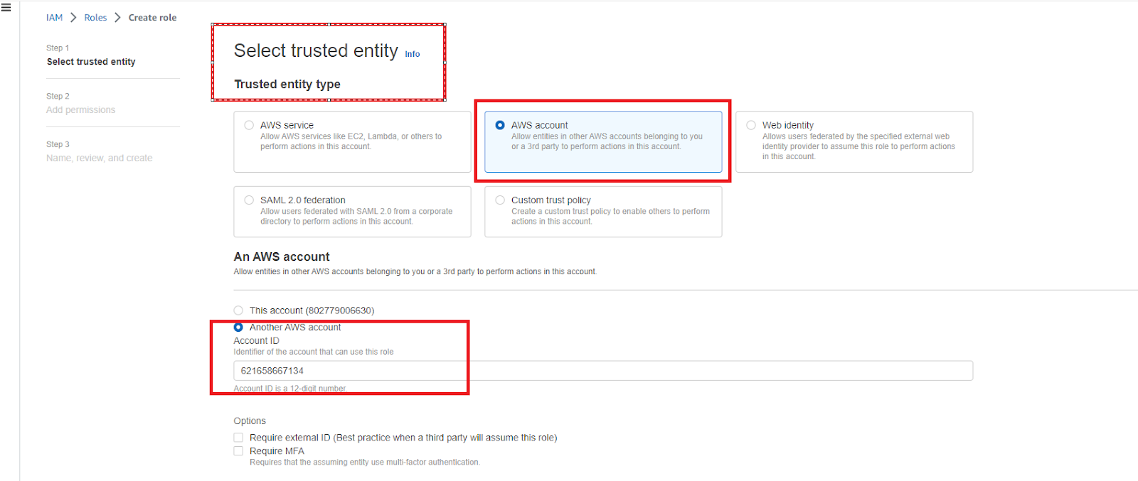 Type 621628867134 into the Account ID field